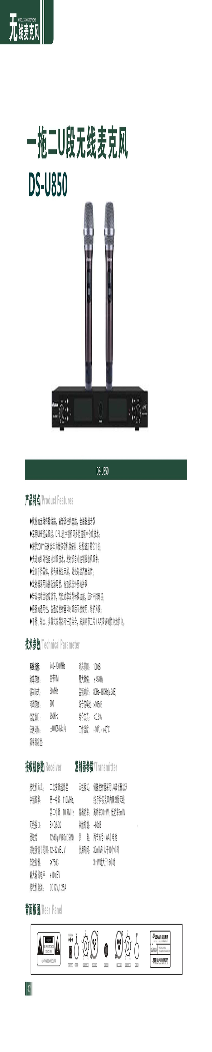 湖山 DS-U850 一拖二段无线麦克风 鹅颈话筒 可选