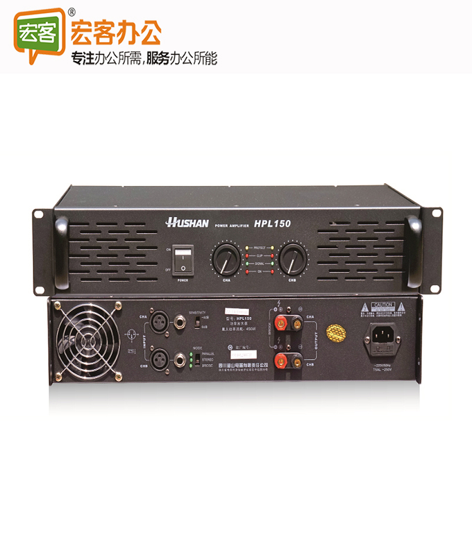 ★1、 国际标准2U高度设计,适合安装在标准的19吋机柜内,带把手。★2、 大型羽状散热器、风冷式自动可变速散热系统。3、功率输出采用多对优质大功率管并联设计,输出功率强劲。★4、内置自动压限器,有效限制大动态信号削波,确保音色悦耳,保护扬声器系统。★5、具备过热、过流、短路和DC漂移等多重检测保护系统。★6、面板具备电源、信号、削峰、保护等多种LED指示。★7、具备-4dB/0dB两档输入灵敏度选择模式。★8、具备并接、立体声、桥接及工作模式LED指示。★9、具备XLR、TRS1/4〃平衡输入端口和接线柱式输出端口。★10、保险管与电源插座一体便于维护HPL150语音功率放大器主要技术参数:额定功率 :2×150W/8Ω;额定输入灵敏度:-4dB/0dB;失真度 :≤0.5%;MAX功率消耗 :450W;净尺寸 :480×98×340;净重 :8kg。 -