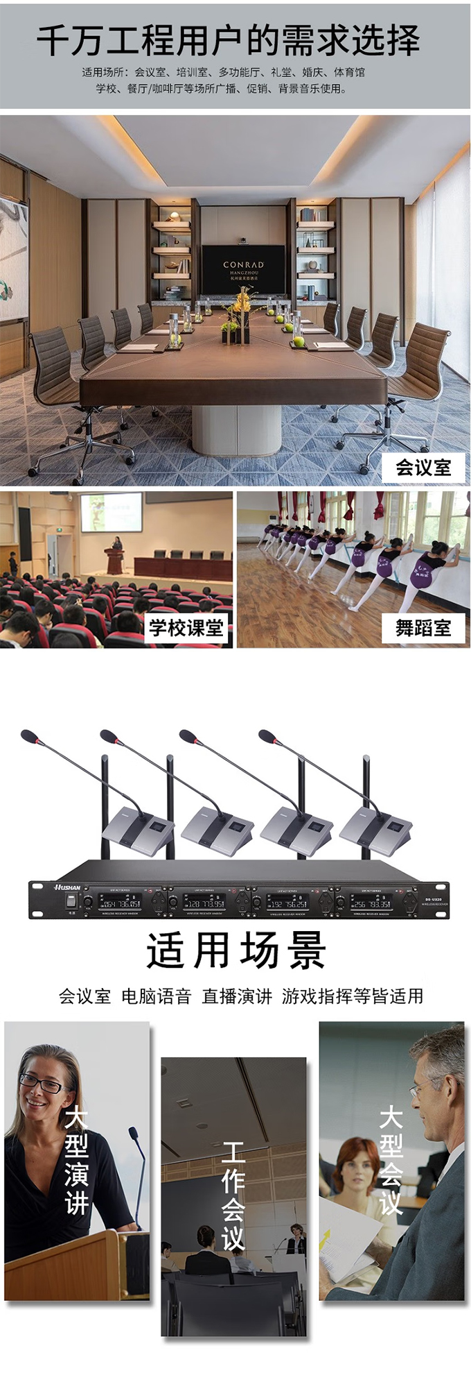 湖山 DS-UX20 一拖四无线鹅颈话筒会议话筒